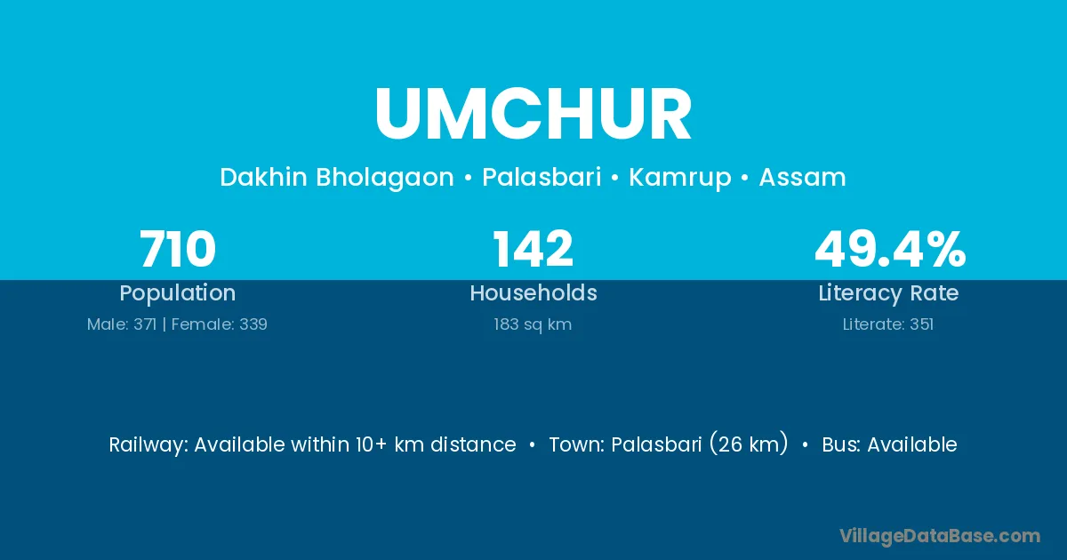 Palasbari (26 km) is the nearest town to Umchur village for major economic activities and is located approximately 26 km away.
