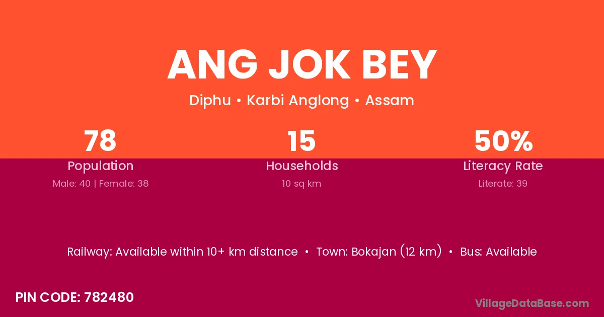 Bokajan (12 km) is the nearest town to Ang Jok Bey village for major economic activities and is located approximately 12 km away.