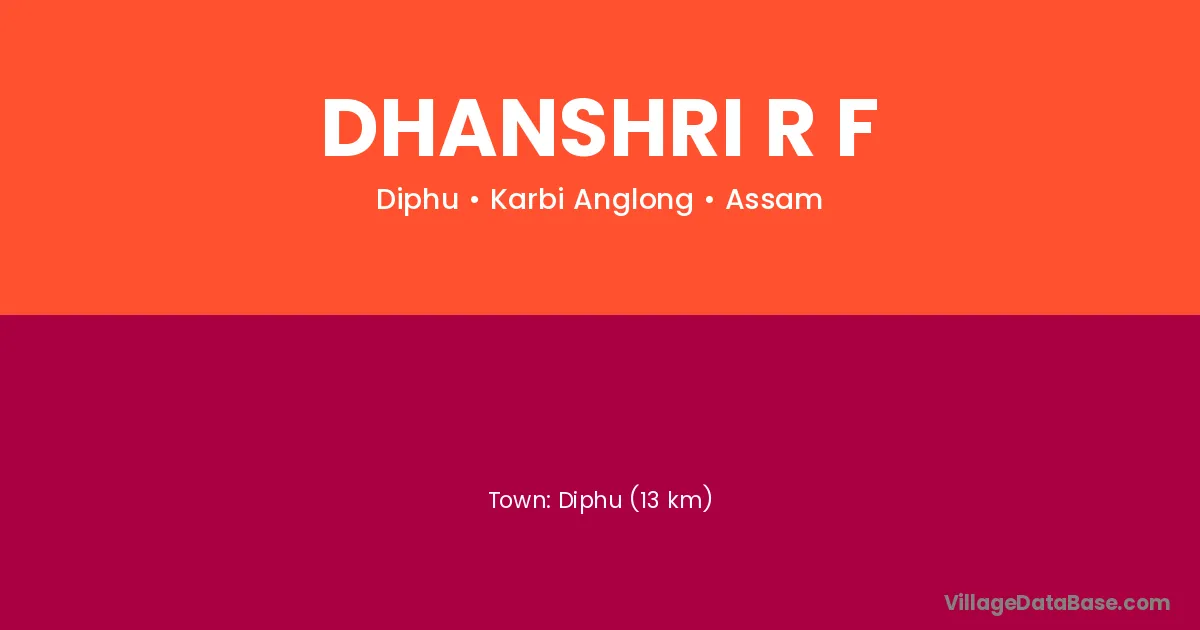 Diphu (13 km) is the nearest town to Dhanshri R F village for major economic activities and is located approximately 13 km away.