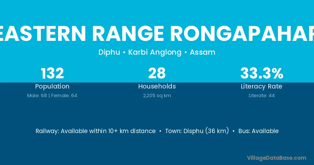 Disphu (36 km) is the nearest town to Eastern Range Rongapahar village for major economic activities and is located approximately 36 km away.
