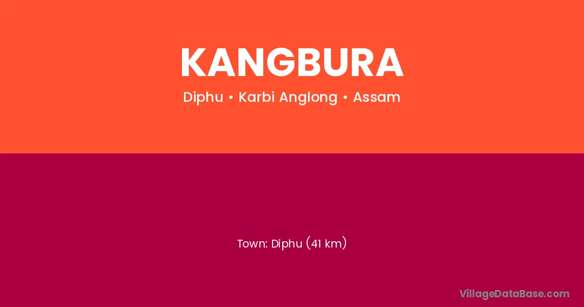 Diphu (41 km) is the nearest town to Kangbura village for major economic activities and is located approximately 41 km away.