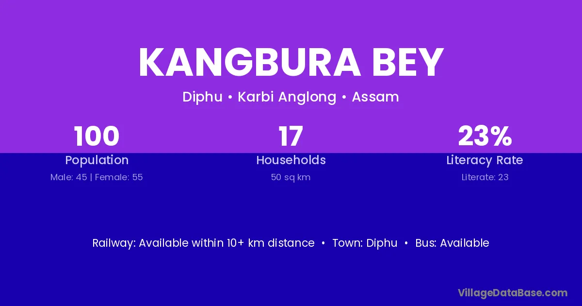 Kangbura Bey village has a total population of 100 people, of which 45 are males and 55 are females.