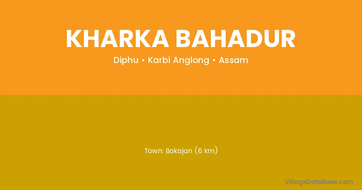 Bokajan (6 km) is the nearest town to Kharka Bahadur village for major economic activities and is located approximately 6 km away.