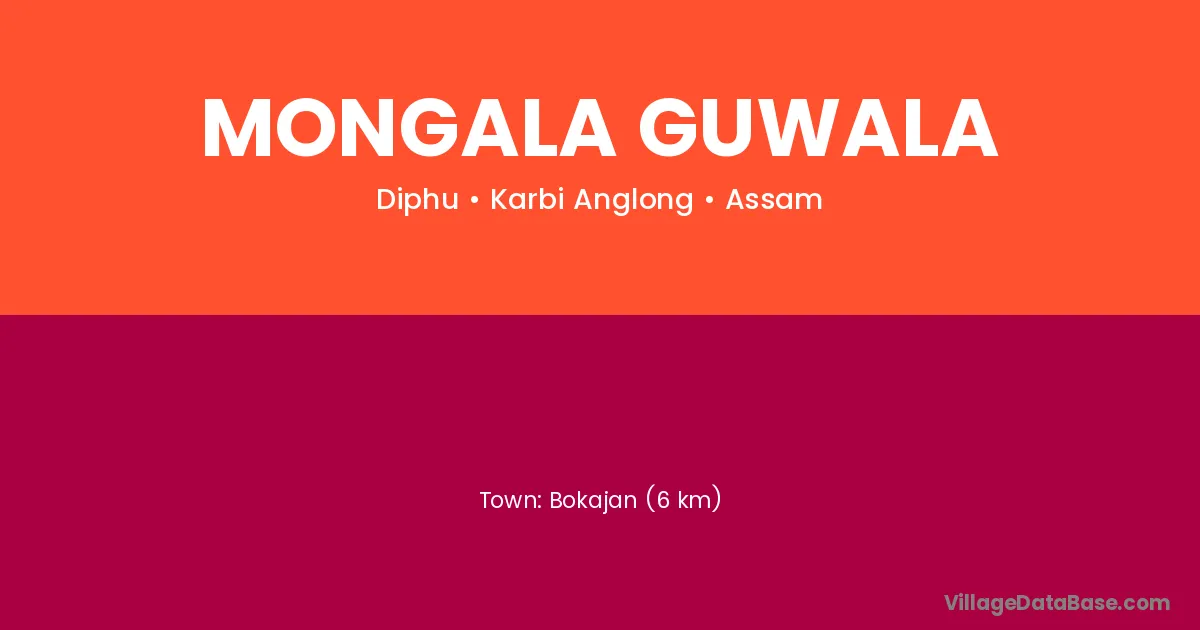 Bokajan (6 km) is the nearest town to Mongala Guwala village for major economic activities and is located approximately 6 km away.