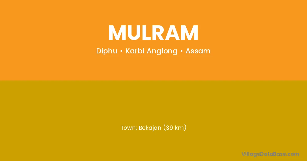 Bokajan (39 km) is the nearest town to Mulram village for major economic activities and is located approximately 39 km away.