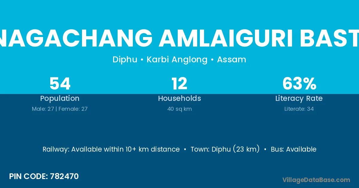 Diphu (23 km) is the nearest town to Nagachang Amlaiguri Basti village for major economic activities and is located approximately 23 km away.