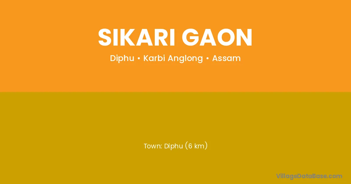 Diphu (6 km) is the nearest town to Sikari Gaon village for major economic activities and is located approximately 6 km away.