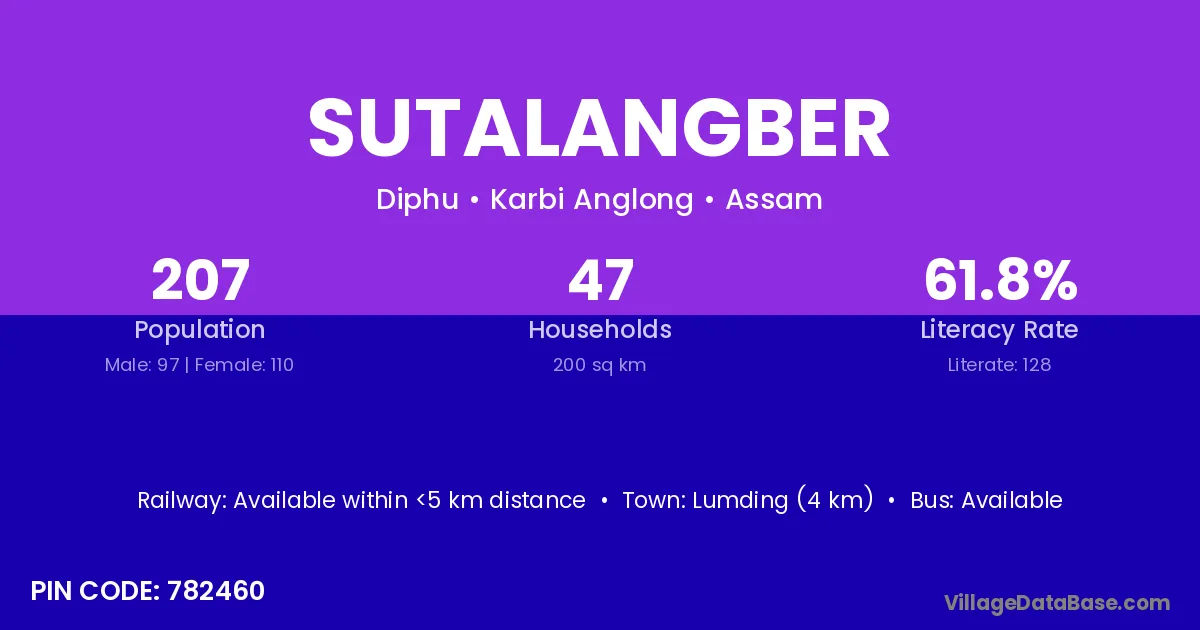 Lumding (4 km) is the nearest town to Sutalangber village for major economic activities and is located approximately 4 km away.