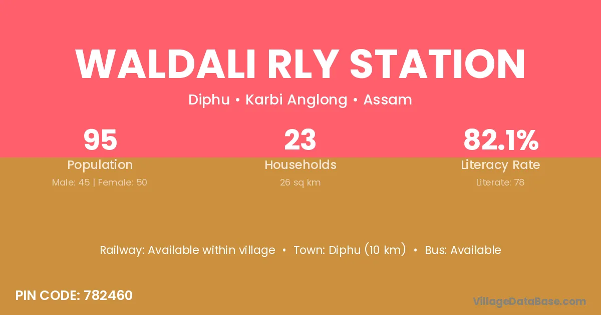 Diphu (10 km) is the nearest town to Waldali Rly Station village for major economic activities and is located approximately 10 km away.