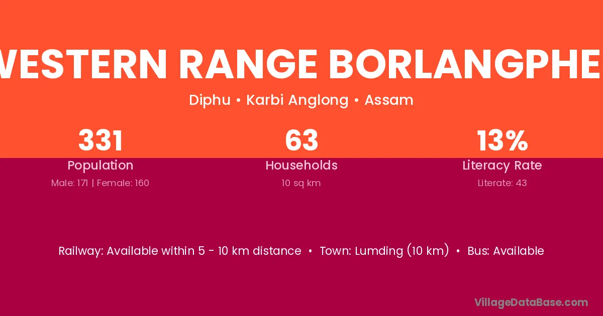 Lumding (10 km) is the nearest town to Western Range Borlangpher village for major economic activities and is located approximately 10 km away.