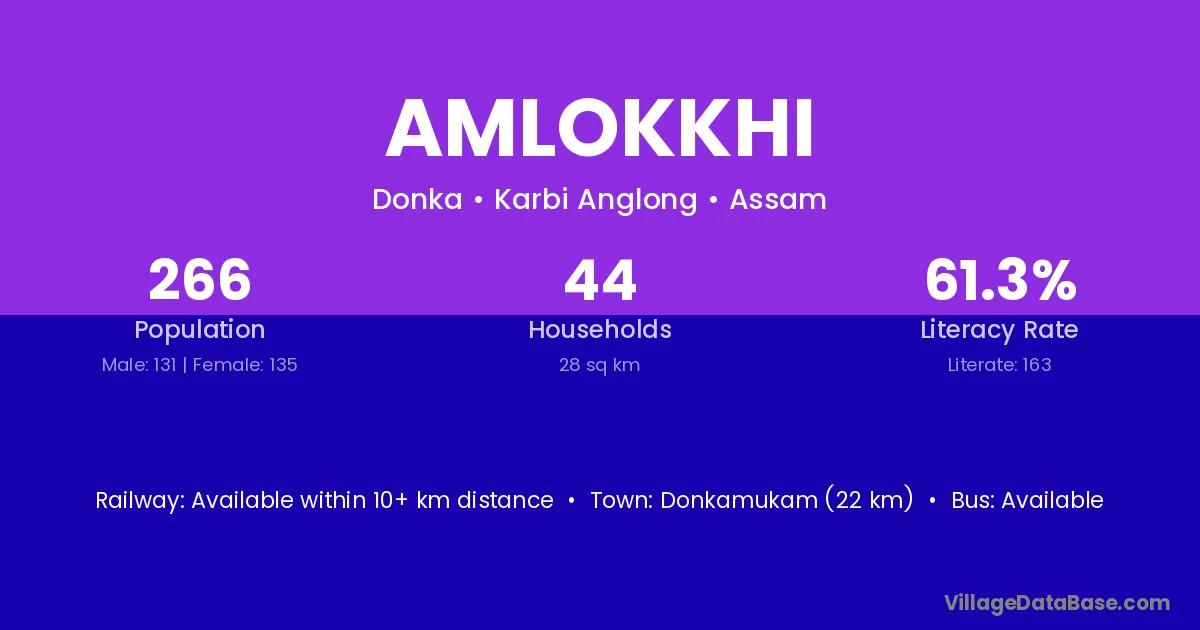 Amlokkhi village is located in the Donka Subdivision of the Karbi Anglong district in Assam .