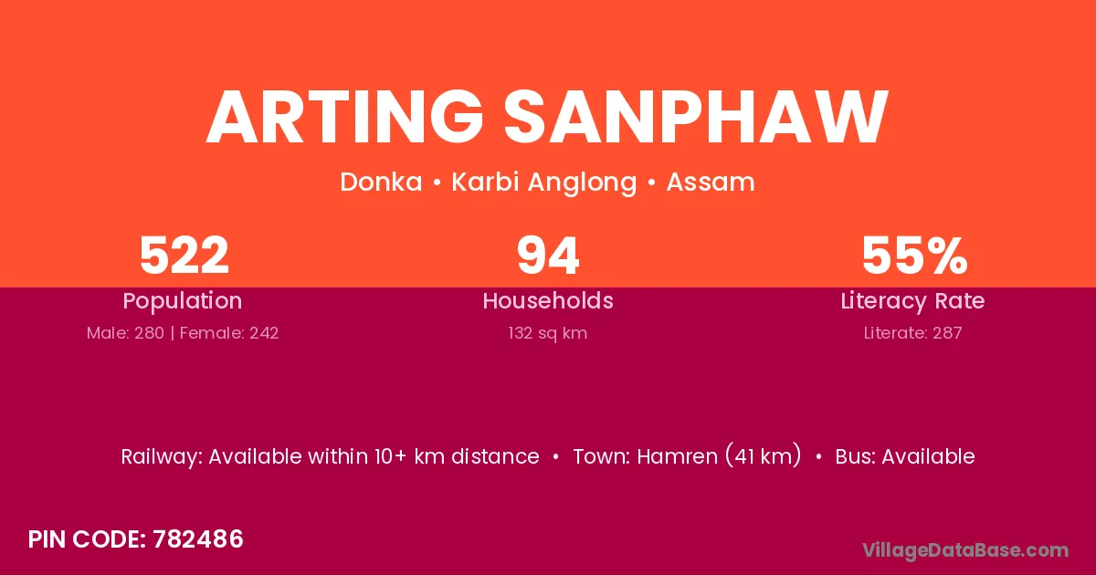 Hamren (41 km) is the nearest town to Arting Sanphaw village for major economic activities and is located approximately 41 km away.