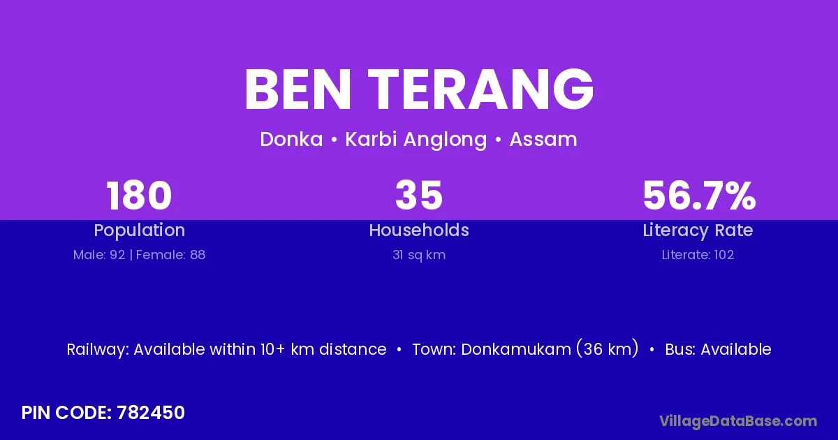 Ben Terang village is located in the Donka Subdivision of the Karbi Anglong district in Assam .