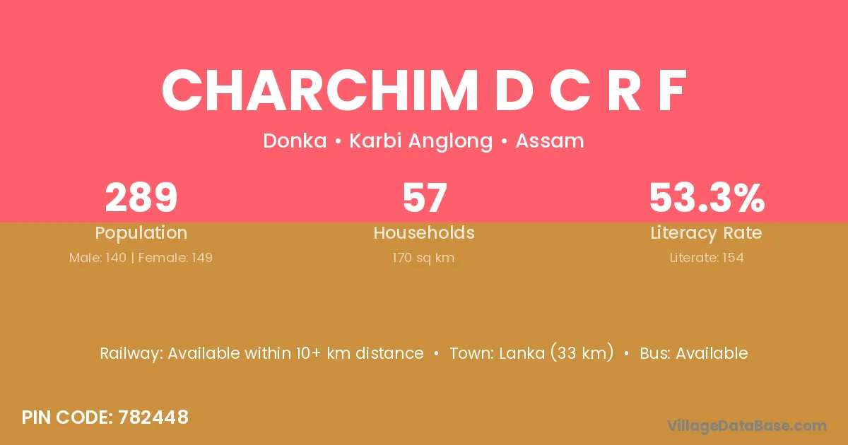 Lanka (33 km) is the nearest town to Charchim D C R F village for major economic activities and is located approximately 33 km away.