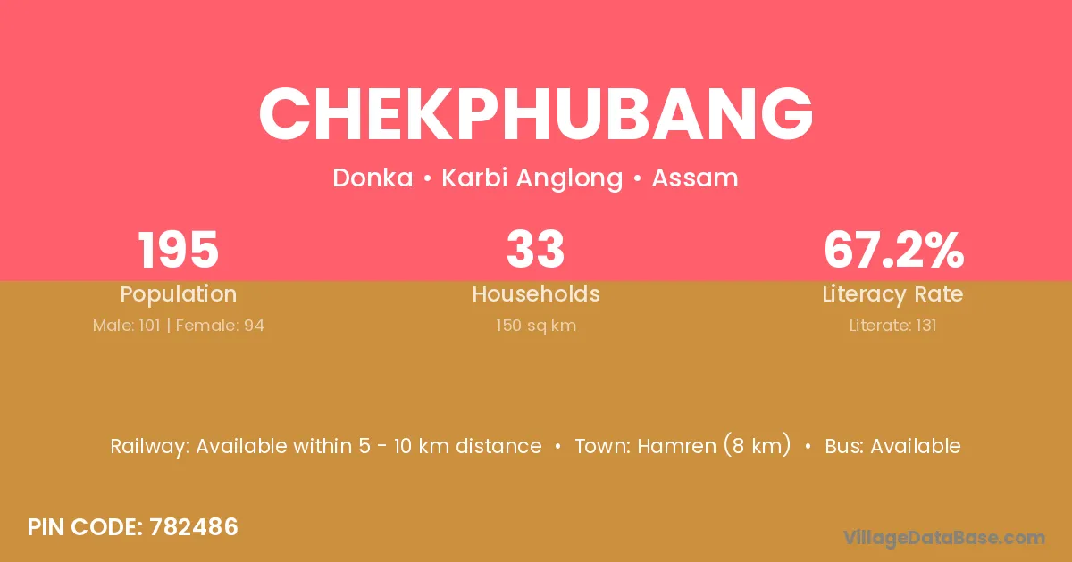 Hamren (8 km) is the nearest town to Chekphubang village for major economic activities and is located approximately 8 km away.