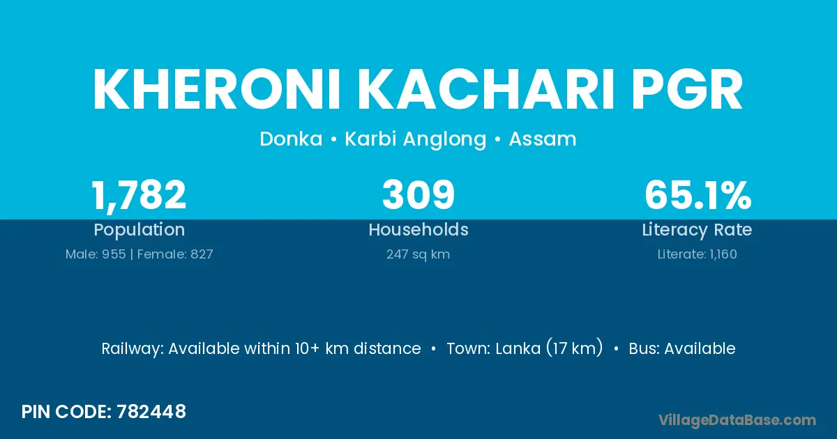Lanka (17 km) is the nearest town to Kheroni Kachari Pgr village for major economic activities and is located approximately 17 km away.