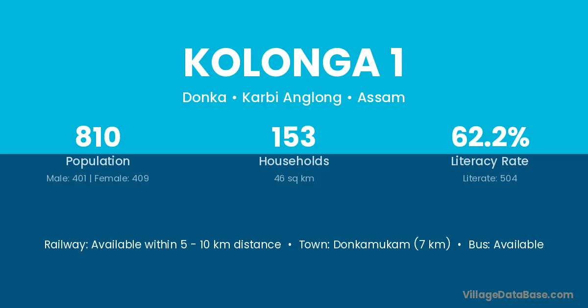 Kolonga 1 village has a total population of 810 people, of which 401 are males and 409 are females.