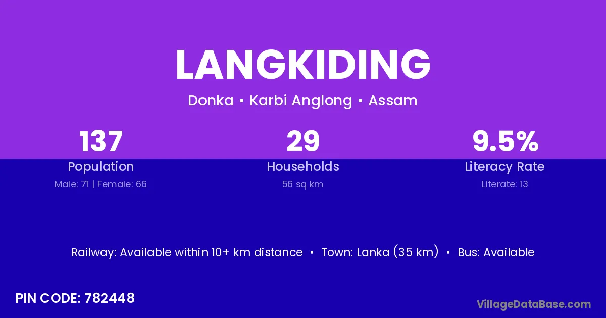 Lanka (35 km) is the nearest town to Langkiding village for major economic activities and is located approximately 35 km away.