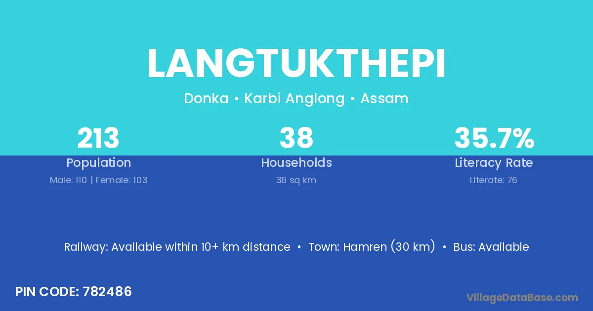Hamren (30 km) is the nearest town to Langtukthepi village for major economic activities and is located approximately 30 km away.