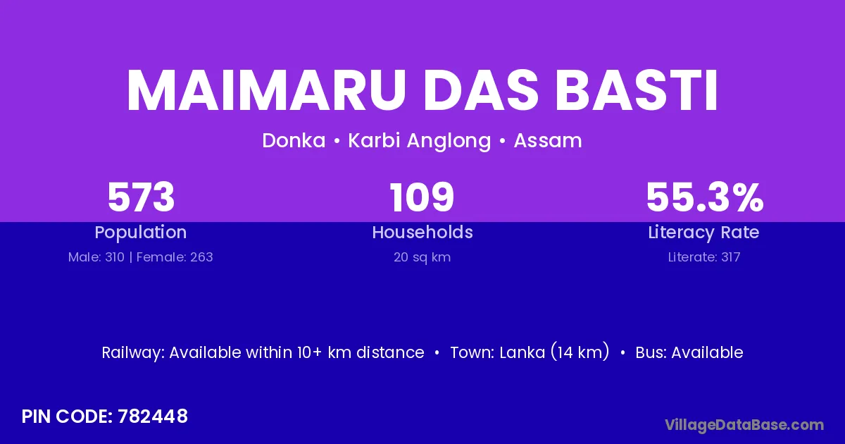 Lanka (14 km) is the nearest town to Maimaru Das Basti village for major economic activities and is located approximately 14 km away.