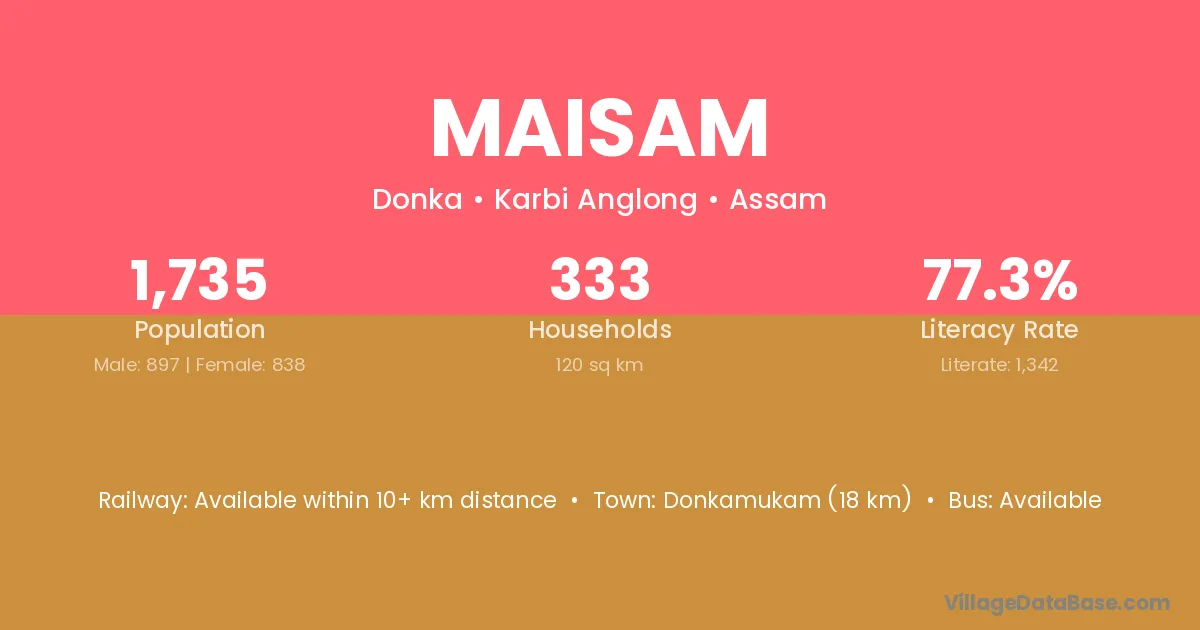 Maisam village is located in the Donka Subdivision of the Karbi Anglong district in Assam .