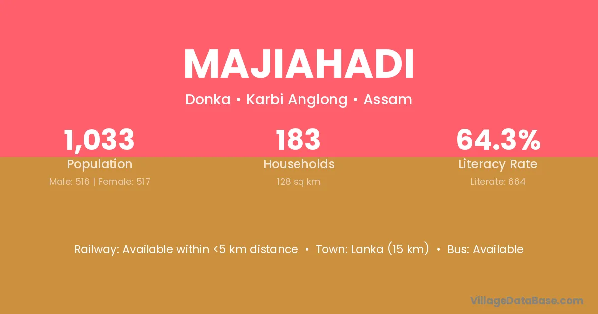 Lanka (15 km) is the nearest town to Majiahadi village for major economic activities and is located approximately 15 km away.