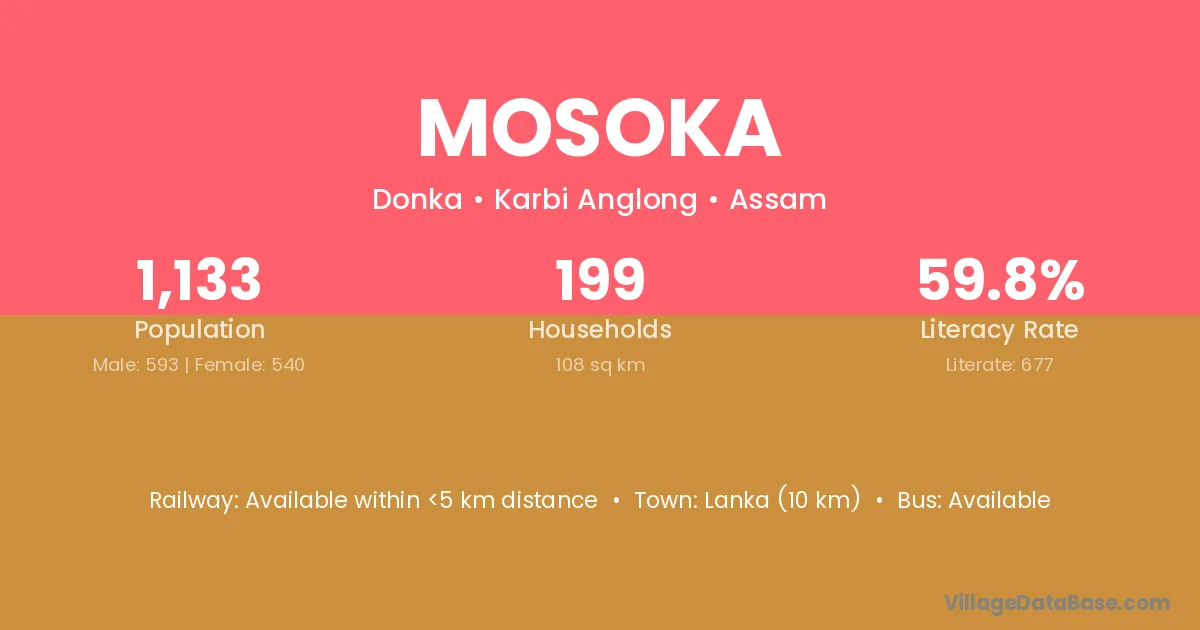 Mosoka village is located in the Donka Subdivision of the Karbi Anglong district in Assam .