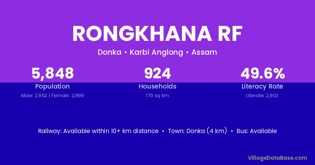 Donka (4 km) is the nearest town to Rongkhana Rf village for major economic activities and is located approximately 4 km away.