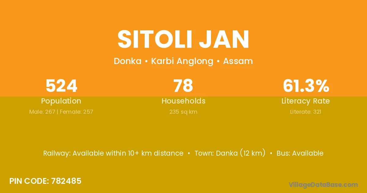 Sitoli Jan village is located in the Donka Subdivision of the Karbi Anglong district in Assam .