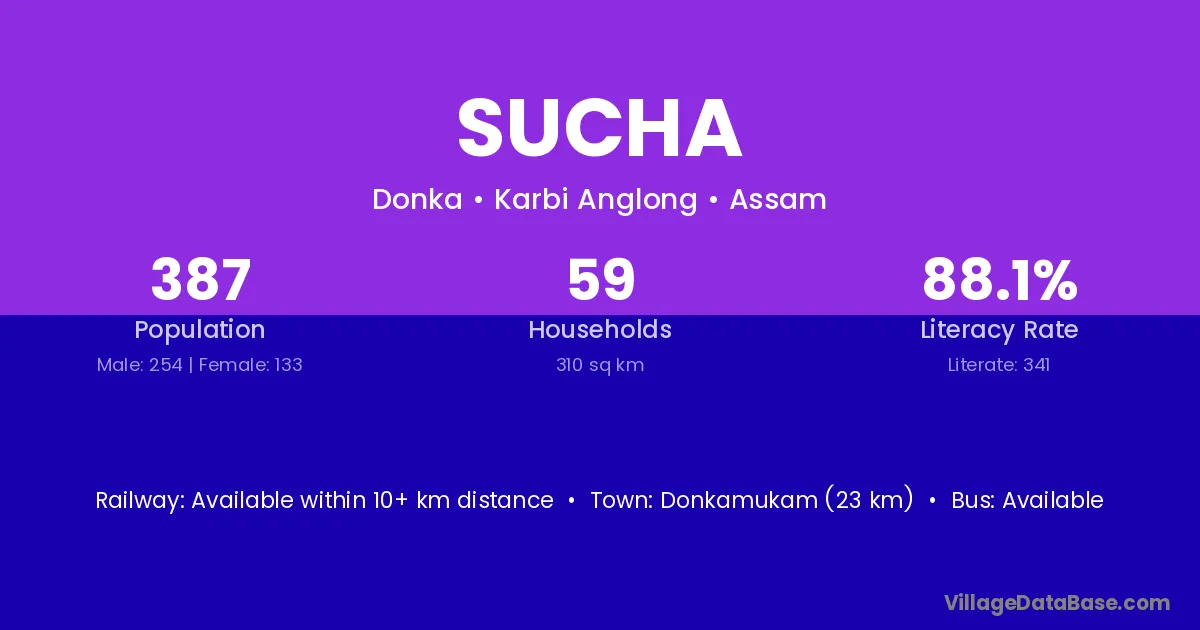 Sucha village is located in the Donka Subdivision of the Karbi Anglong district in Assam .