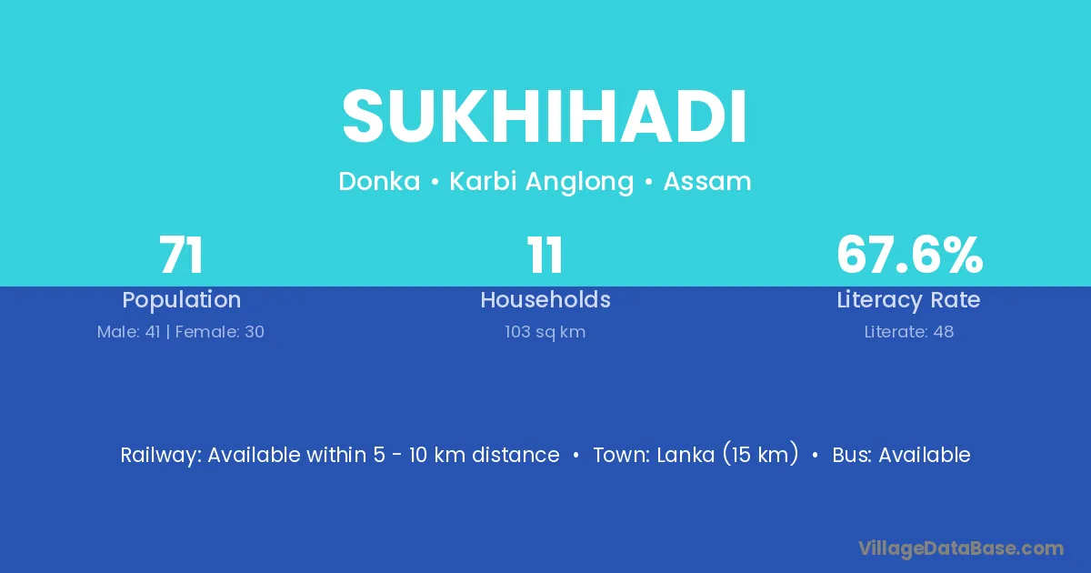 Lanka (15 km) is the nearest town to Sukhihadi village for major economic activities and is located approximately 15 km away.