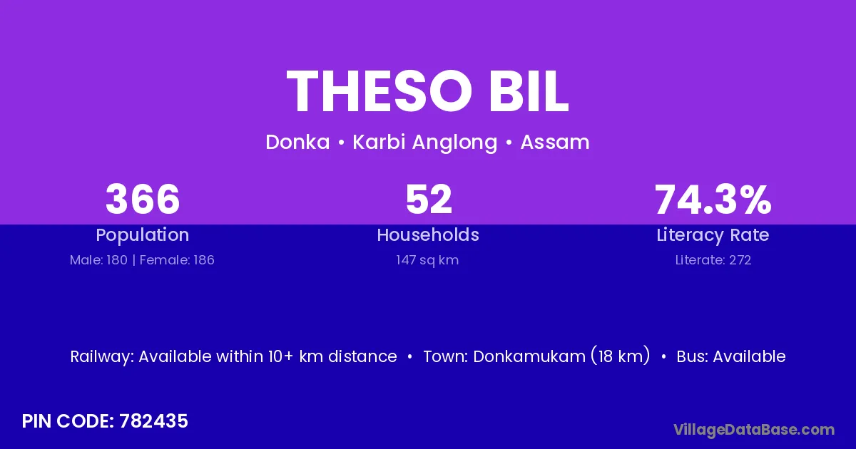 Theso Bil village has a total population of 366 people, of which 180 are males and 186 are females.