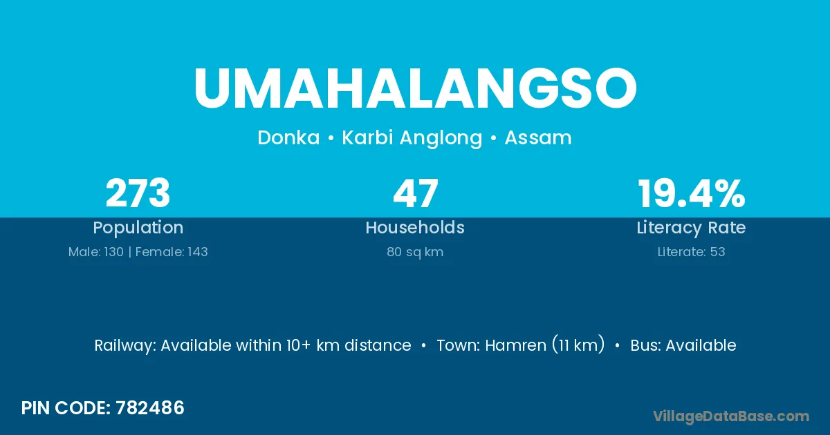 Hamren (11 km) is the nearest town to Umahalangso village for major economic activities and is located approximately 11 km away.