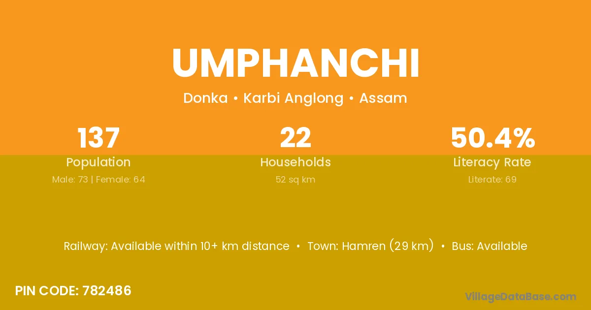Hamren (29 km) is the nearest town to Umphanchi village for major economic activities and is located approximately 29 km away.