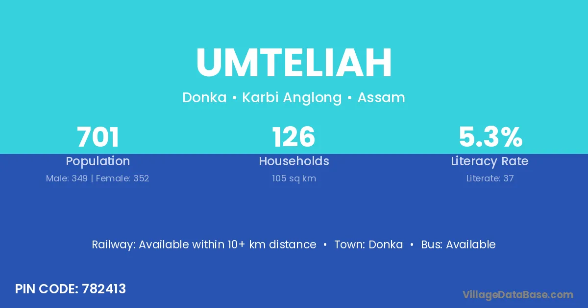 Umteliah village has a total population of 701 people, of which 349 are males and 352 are females.