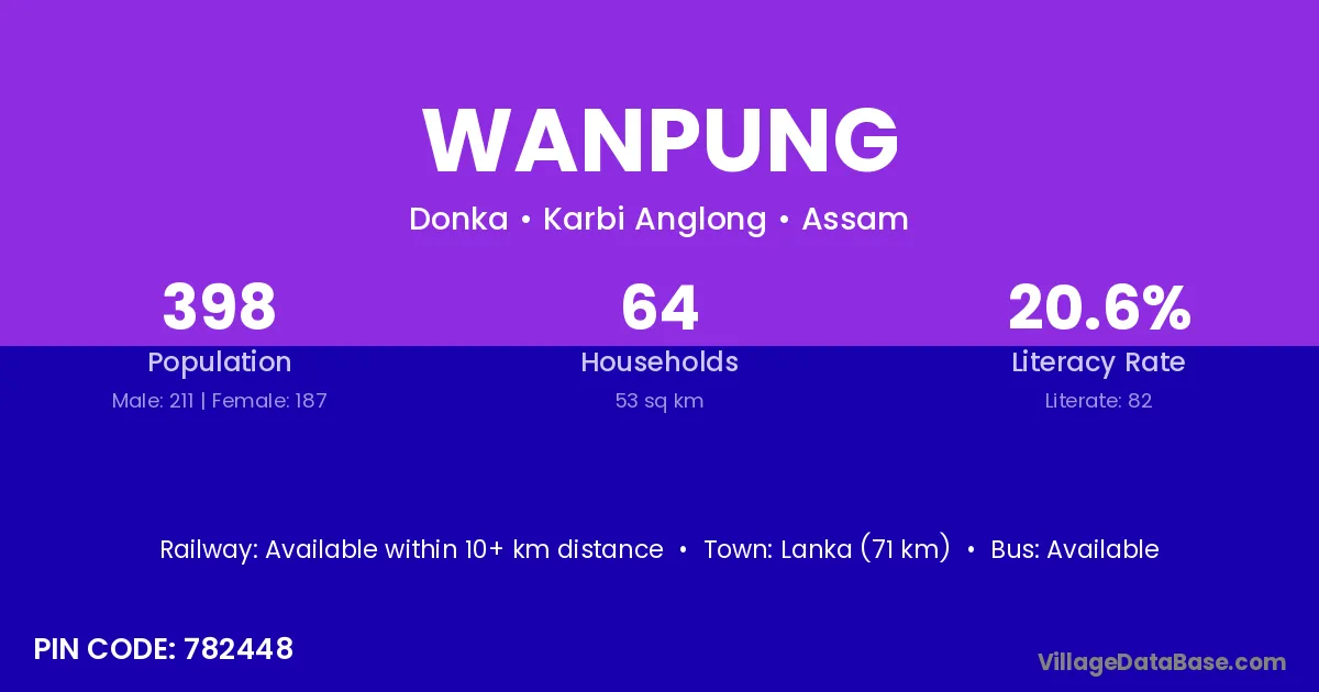 Lanka (71 km) is the nearest town to Wanpung village for major economic activities and is located approximately 71 km away.