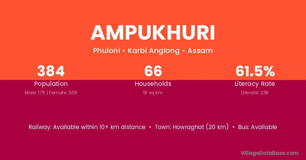Howraghat (20 km) is the nearest town to Ampukhuri village for major economic activities and is located approximately 20 km away.