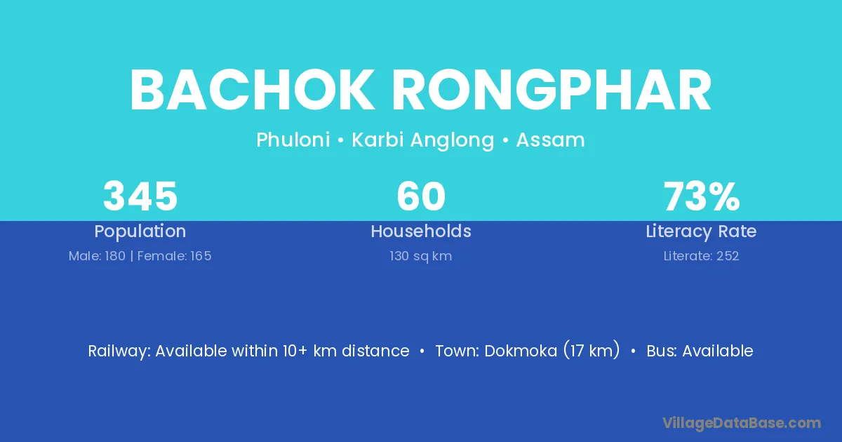 Bachok Rongphar village has a total population of 345 people, of which 180 are males and 165 are females.