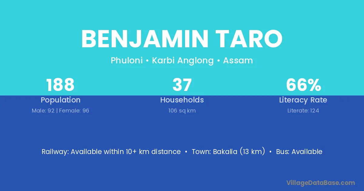 Benjamin Taro village is located in the Phuloni Subdivision of the Karbi Anglong district in Assam .