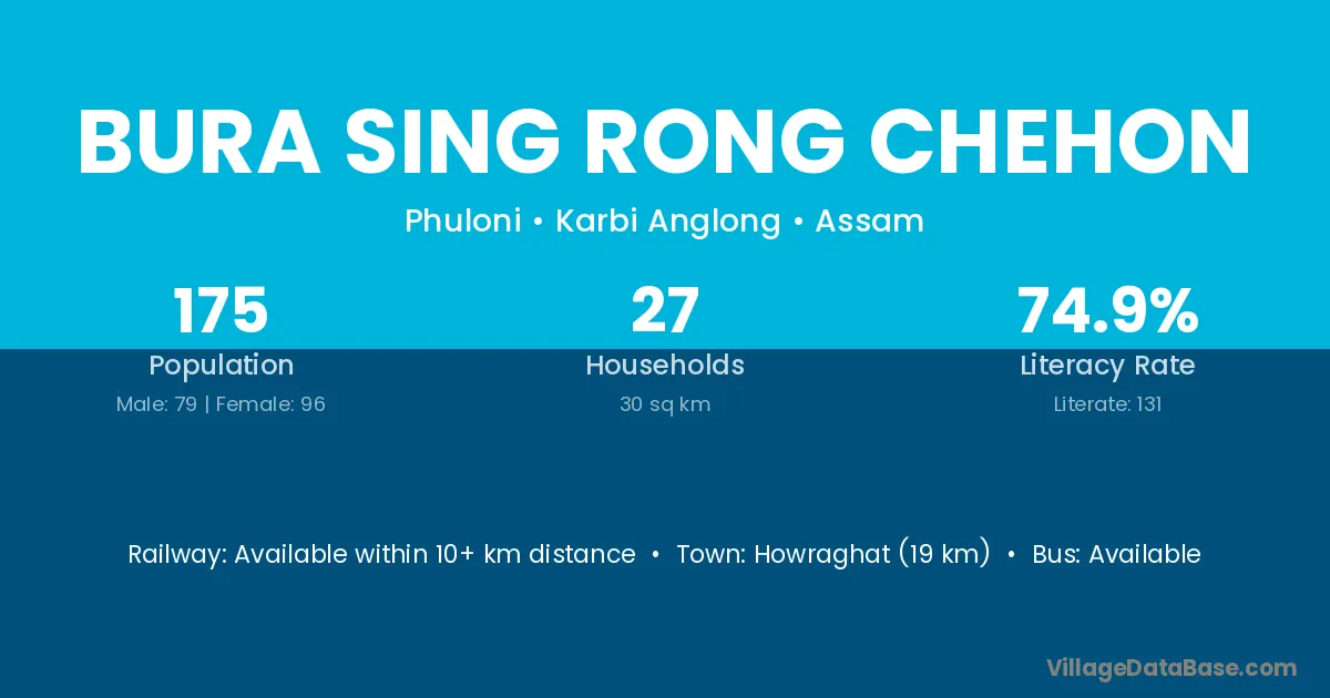 Bura Sing Rong Chehon village is located in the Phuloni Subdivision of the Karbi Anglong district in Assam .