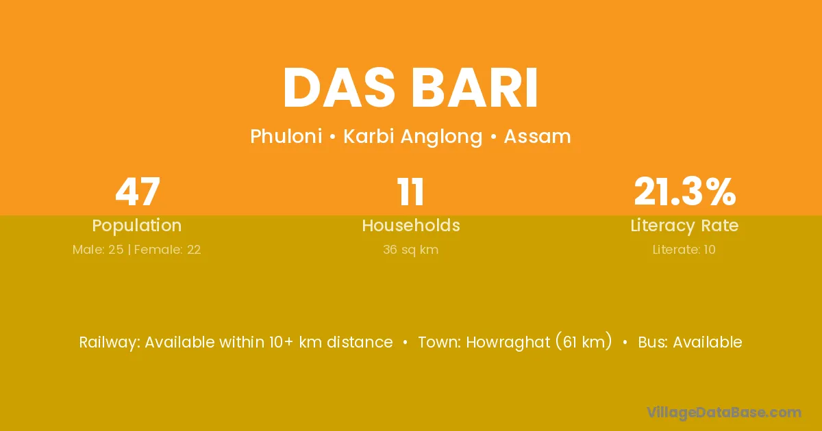 Das Bari village is located in the Phuloni Subdivision of the Karbi Anglong district in Assam .