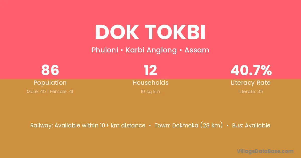 Dok Tokbi village has a total population of 86 people, of which 45 are males and 41 are females.
