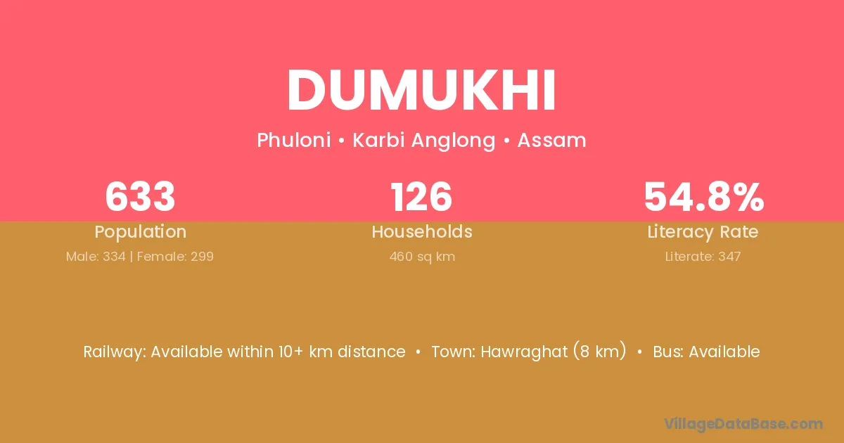 Hawraghat (8 km) is the nearest town to Dumukhi village for major economic activities and is located approximately 8 km away.