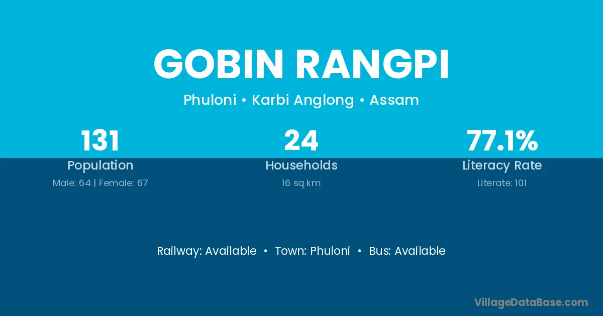Gobin Rangpi village has a total population of 131 people, of which 64 are males and 67 are females.