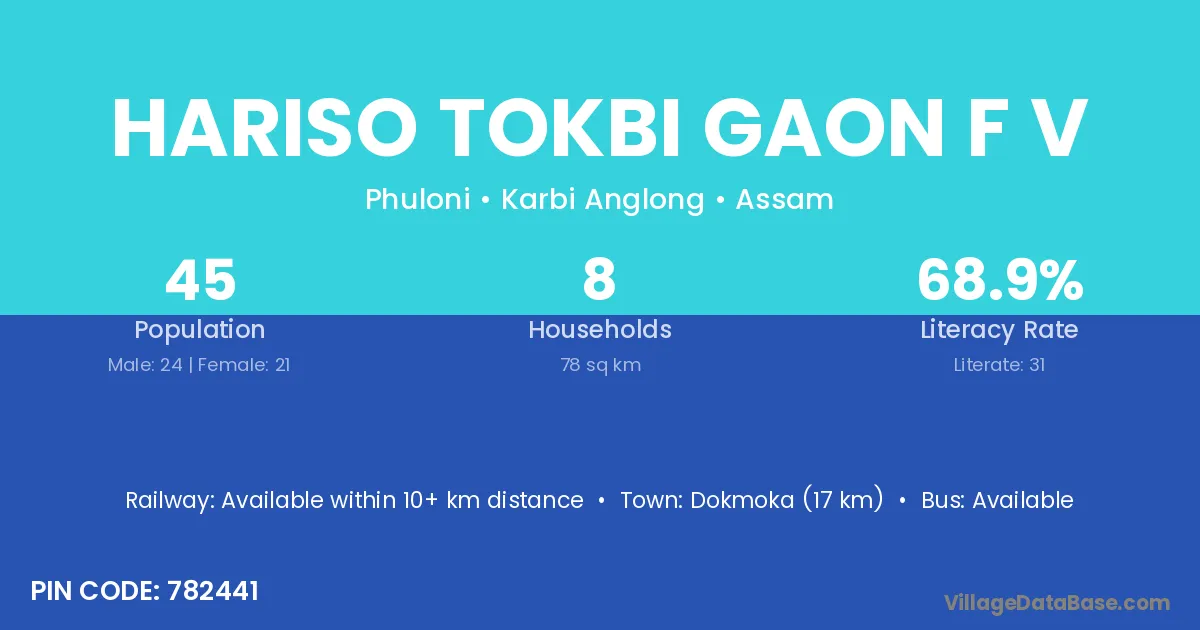 There are approximately 8 households in Hariso Tokbi Gaon F V village.