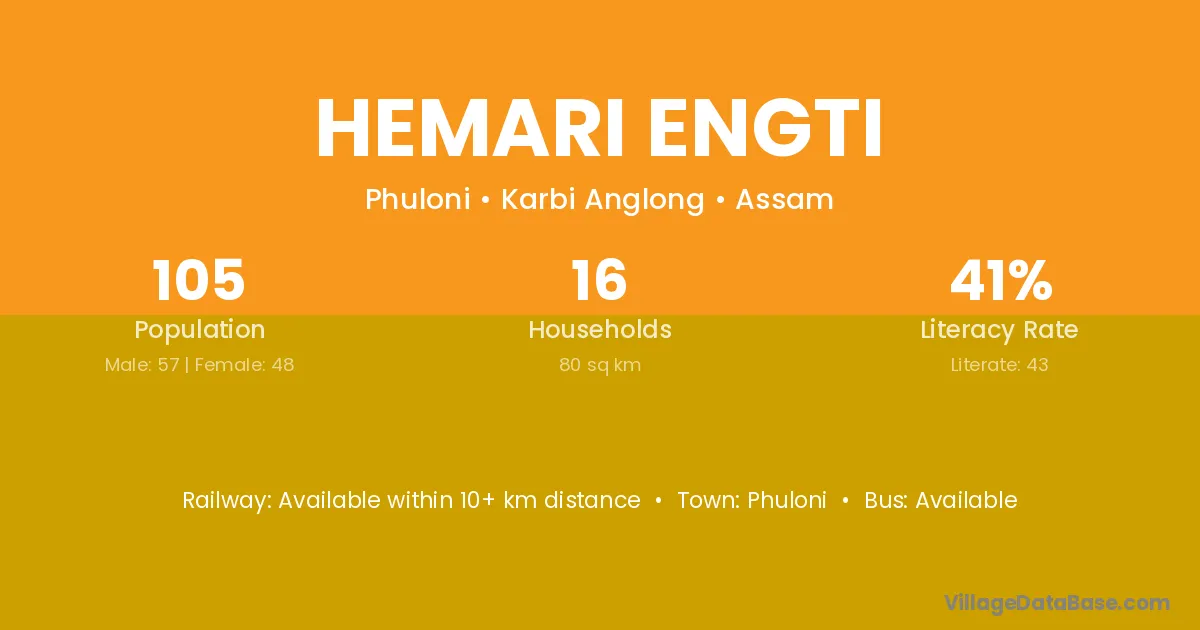 Phuloni is the nearest town to Hemari Engti village for major economic activities