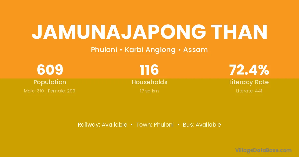 Jamunajapong Than village has a total population of 609 people, of which 310 are males and 299 are females.