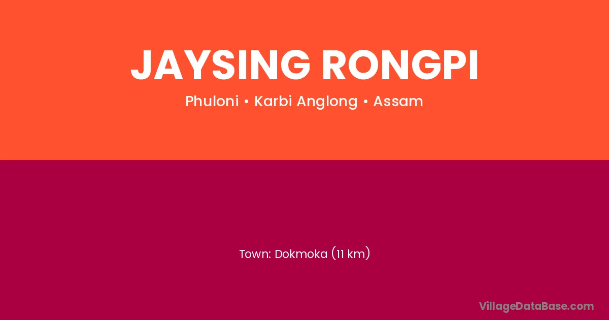 Dokmoka (11 km) is the nearest town to Jaysing Rongpi village for major economic activities and is located approximately 11 km away.