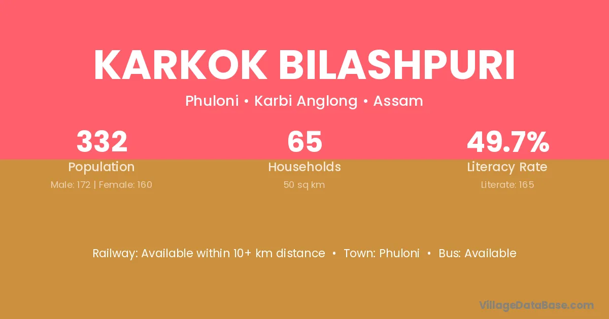 Phuloni is the nearest town to Karkok Bilashpuri village for major economic activities