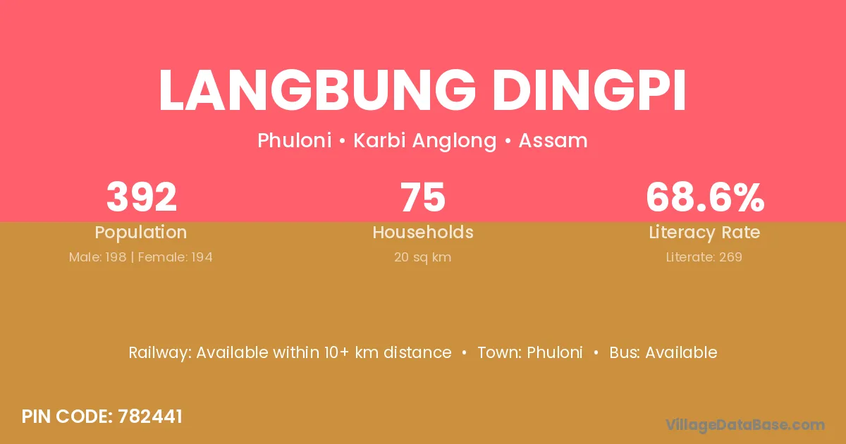 Langbung Dingpi village has a total population of 392 people, of which 198 are males and 194 are females.